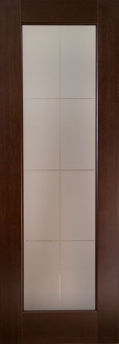 В производстве шпонированных межкомнатных дверей используются различные виды натурального шпона ценных пород, а так же шпон Fine-Line (реконструированный шпон из натуральной древесины). Двери комплектуются стеклом сатин толщиной 4 мм. При производстве дверей используетсянемецкий клей Kleiberit высокой прочности на основе полиуретана с высочайшей водостойкостью и термостойкостью; итальянские полиуретановые двухкомпонентные лаки Saerlak, которые намного продлевают срок службы дверей. Коробки(c уплотнителем) и наличник изготовлены из сосны и также, как и дверные полотна покрыты натуральным шпоном.